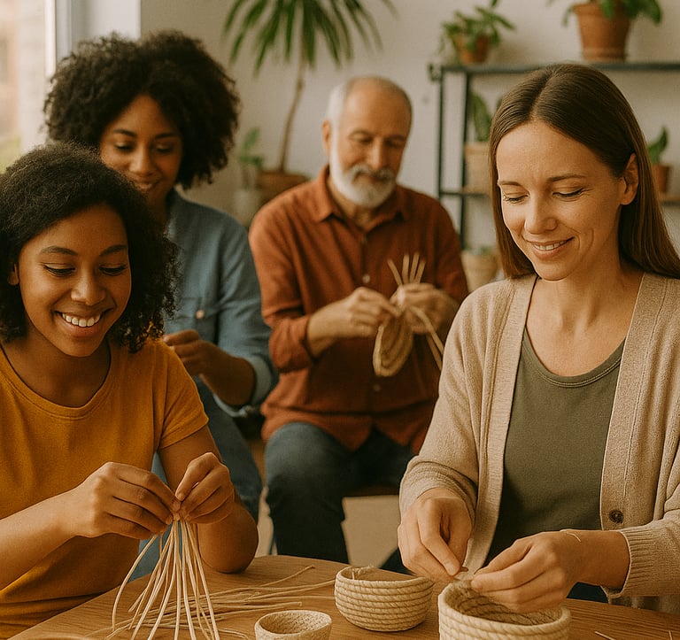 Realizamos oficinas que estimulam a inovação e o uso de talentos criativos para gerar renda de forma colaborativa.